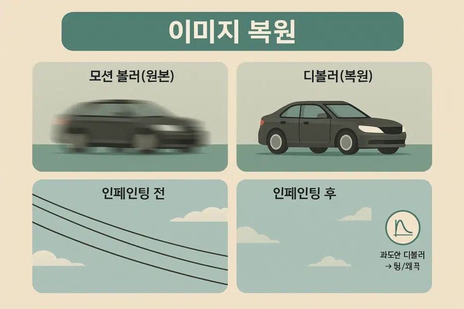 🎯 Point: Overdoing de-blur shows ringing/distortion. Always go small → large.